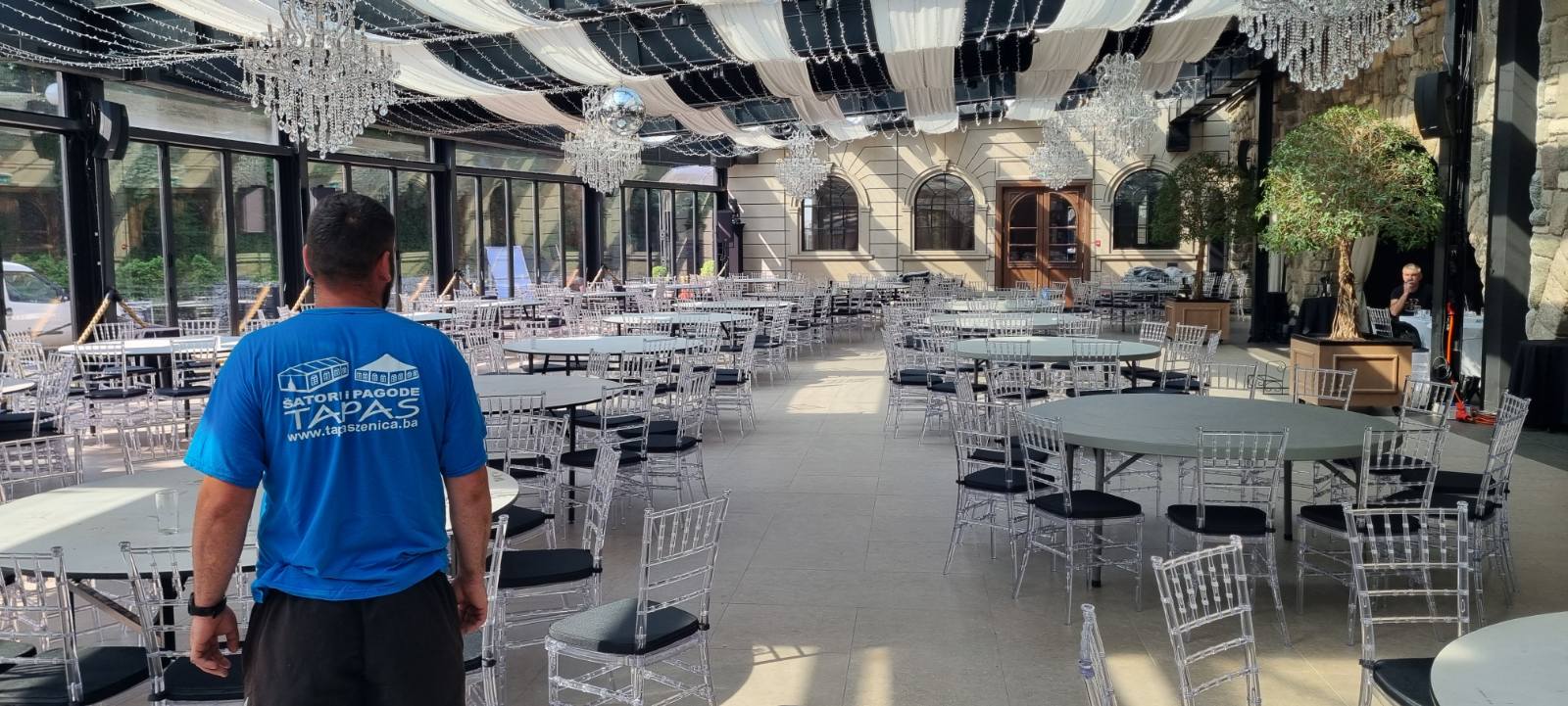 Bilo da imate potrebu za stolicama za poslovni događaj ili svečanu proslavu, Tapas raspolaže sa stolicama za svaku priliku. Tiffany stolice u zlatnoj i bijeloj boji su savršeno rješenje za Vašu proslavu. Tapacirane stolice stolice su udobno rješenje za Vaš događaj na kojem će se posjetioci ugodno smjestiti i bez problema uživati u sadržajima koje ste za njih pripremili.