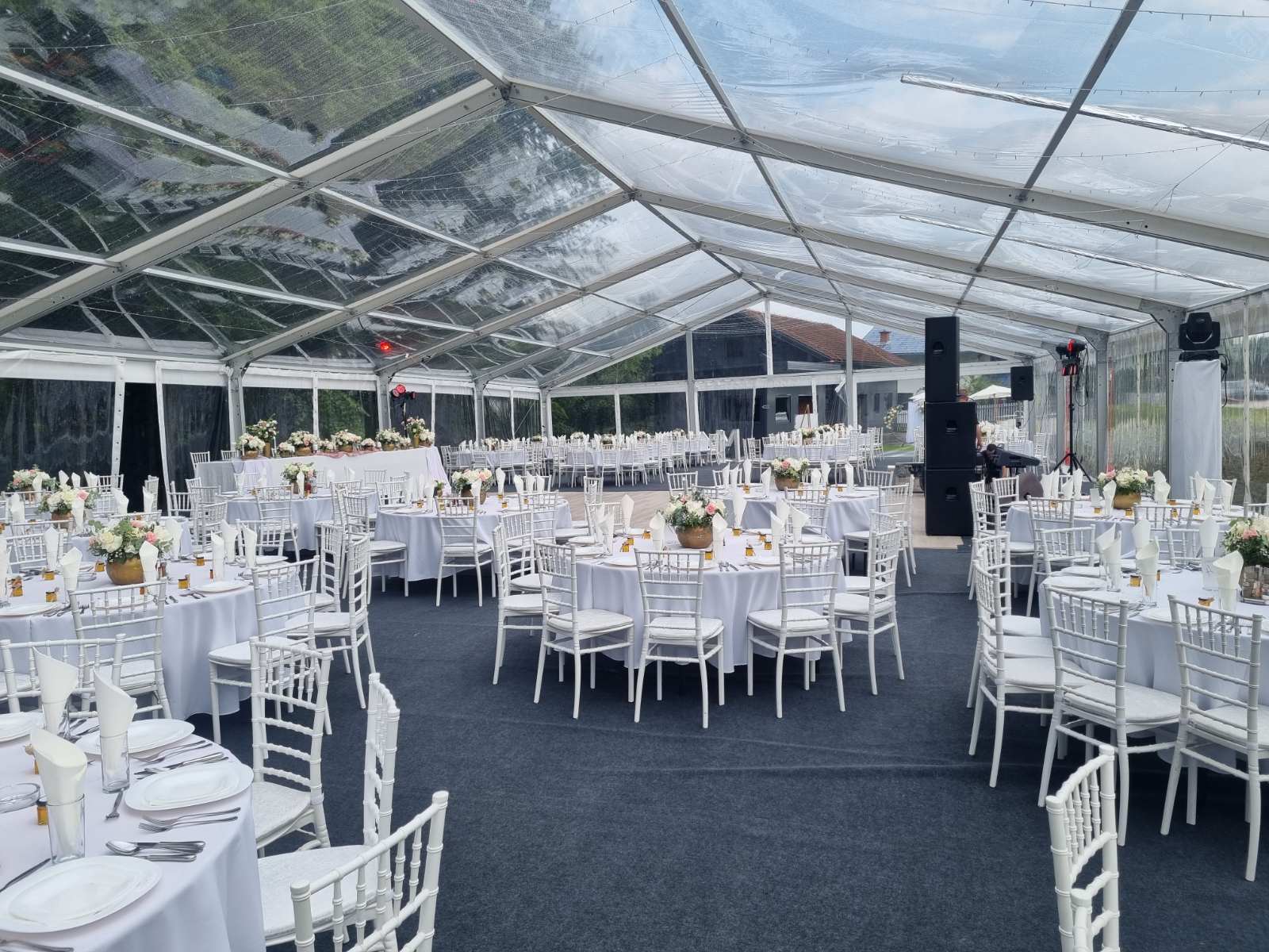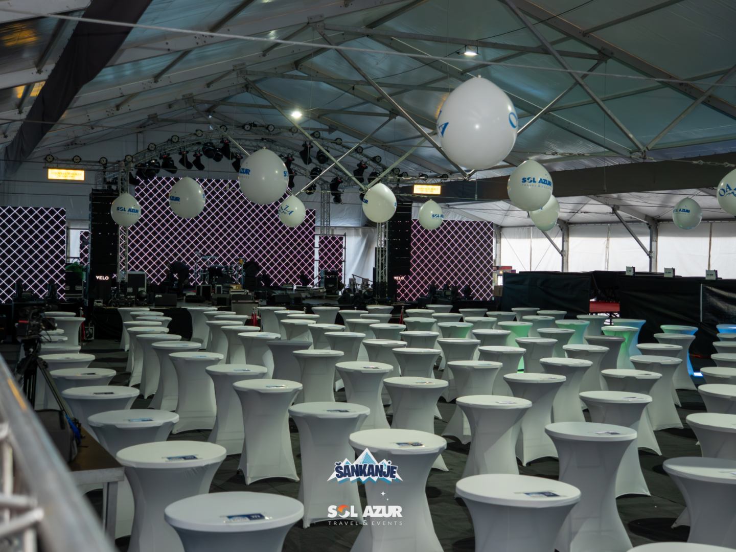 Za potrebe organizacije Vašeg događaja Tapas ima ponudu koja se sastoji od okruglih, pravougaonih i barskih stolova. Promjer okruglog stola je 160cm, barskog stola 60 i 80cm a dimenzije pravoguaonog su 200x80cm. Za sve vrste stolova na raspolaganju imamo odgovarajuće stolnjake.
